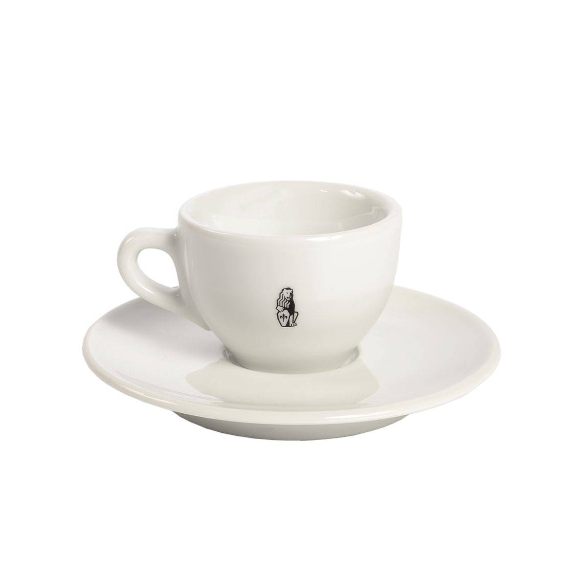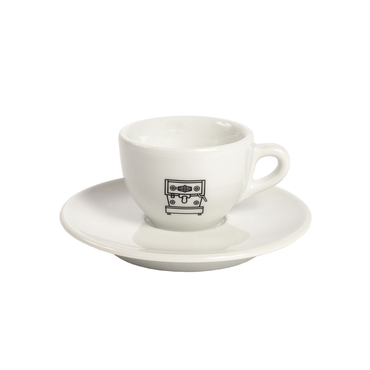 The one and only white La Marzocco porcelain espresso cup with black Linea Mini logo.