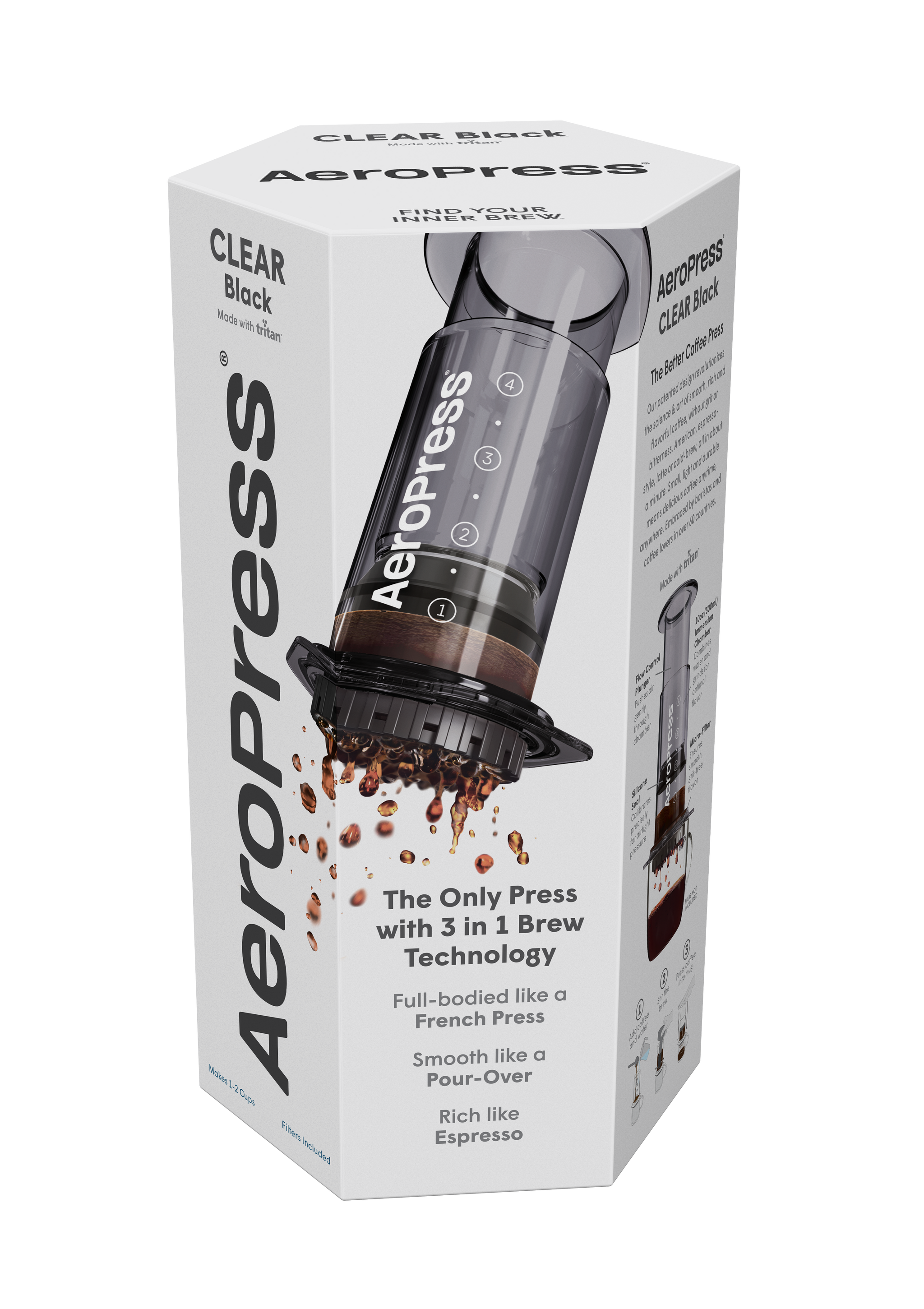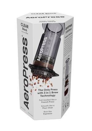 AeroPress Clear er den klassiske AeroPress, du kender og elsker, men nu lavet i holdbart, farvet Tritan™-materiale. Det er lige så hårdført som altid og klar til at tage med på farten – eller pynte på køkkenhylden.