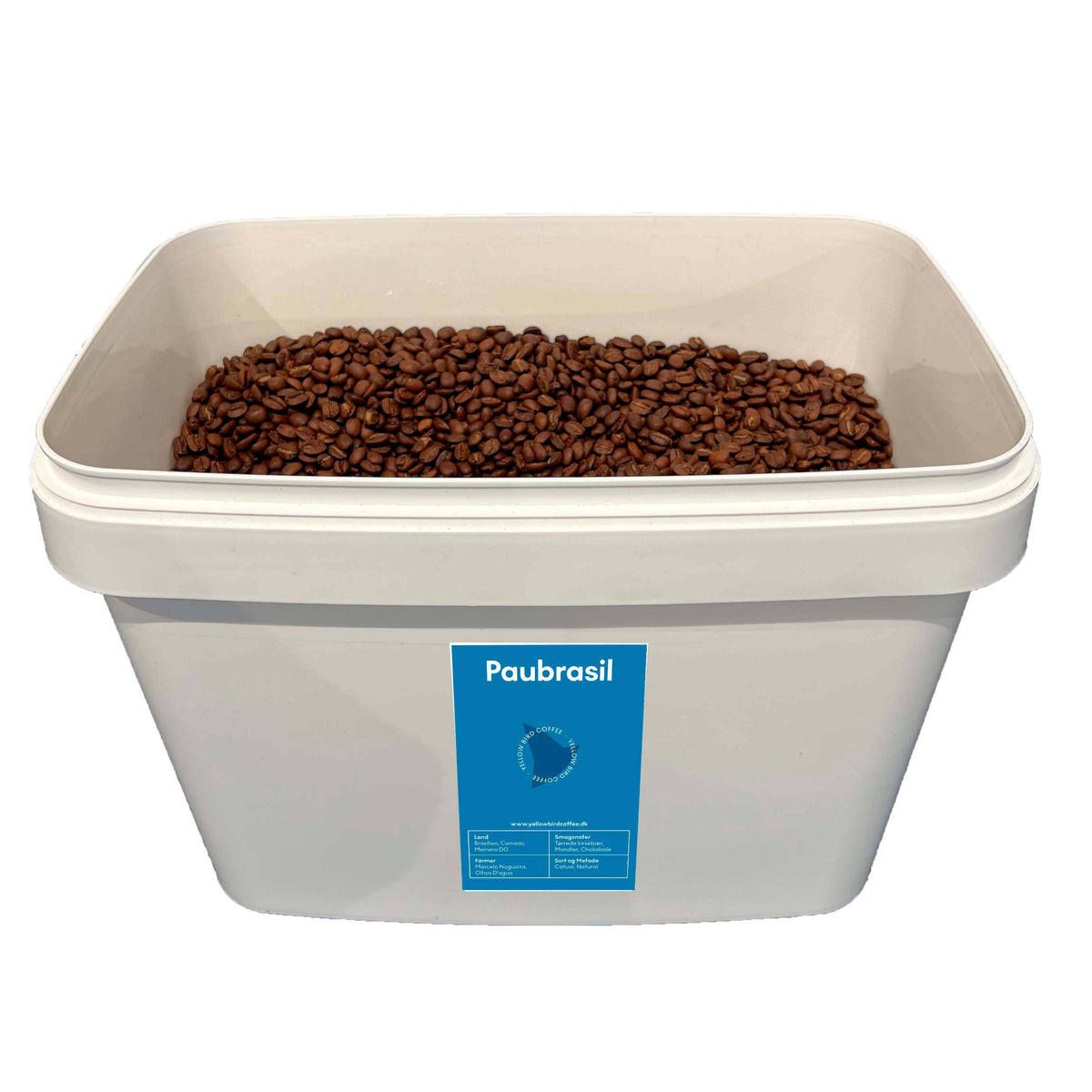 Dette er vores mørkest ristede kaffebønner. 5kg. friskristede kaffebønner i en genanvendelig spand. Kaffen er velegnet til en velsmagende espresso eller americano. Fra vores eget risteri Yellow Bird Coffee.