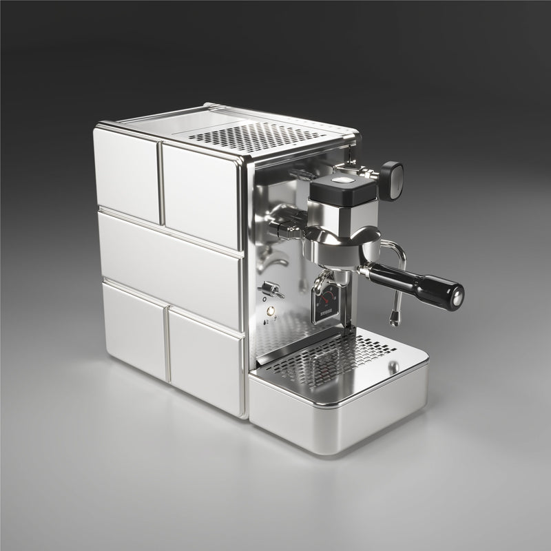 Stone Espresso tilbyder en kompakt budgetvenlig kvalitets espressomaskine, med sit unikke design og professionelle teknologi, opnår du unikke muligheder til en fair pris. Stone giver dig en espressomaskine med optimal temperaturstabilitet og fantastiske resultater i koppen. Du kan brygge og steame samtidigt, uden tap af tryk eller styrke. Med Stone kan du nyde enhver nuance af din espresso uden at gå på kompromis med resultatet i koppen. Maskinen varmer hurtigt op, og der er mulighed for at designe din egen variant. I pakken medfølger der en aluminiums letvægts tamper, singleshot- og doubleshot portafilter.