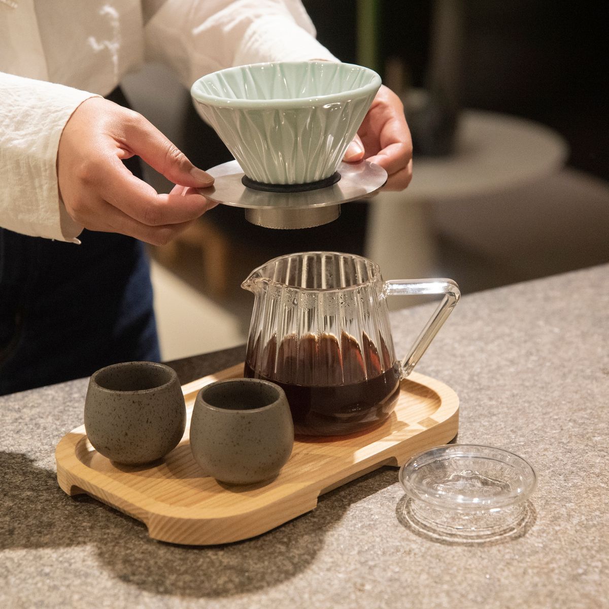 Brygg ditt favoritkaffe direkt i den eleganta glaskannan från Loveramics.