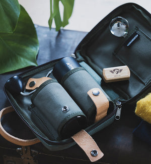 Comandante reseväska för säker transport av C40-kvarn och tillbehör. Utrymme för kvarn, bönbehållare och andra tillbehör. Tillverkad av bomull med mjuka läderhandtag. Finns i svart och grönt. Kvarn ingår ej.