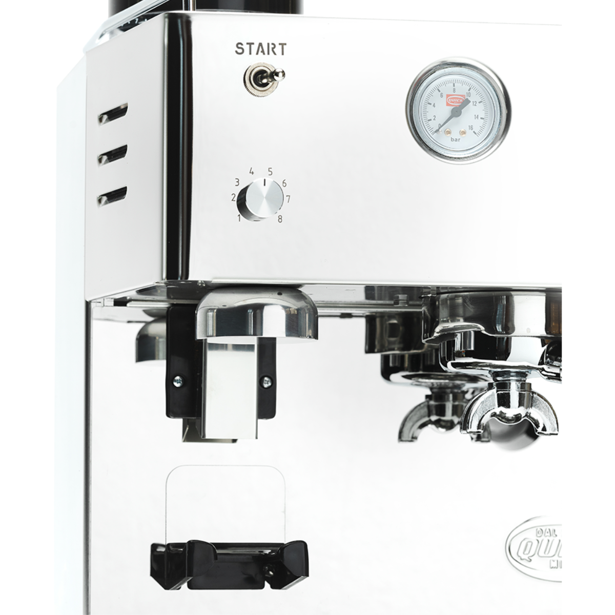 • Hölje: Polerat rostfritt stål; Quick Mill bryggrupp med O-ring.
