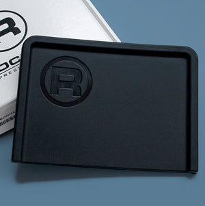 Tjock silikontampermåtte från Rocket Espresso med upphöjd kant och Rocket-logotyp. Den upphöjda kanten ger stabilitet och skyddar ytan. Måtten ger en bra arbetsyta och gör det lättare att tampa ditt kaffe, eftersom du kan stödja din bajonett på måtten samtidigt som du skyddar bänkskivan.