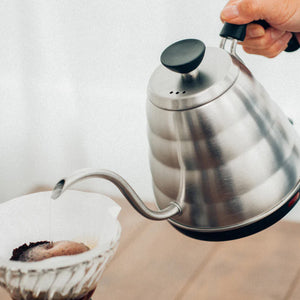 Med denna vattenkokare kan du snabbt värma vatten till kaffe och te.